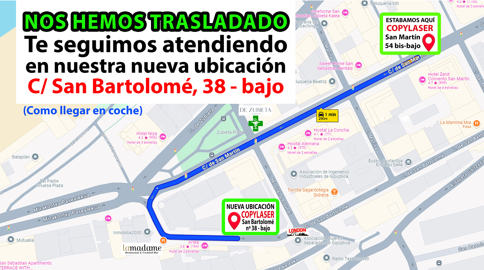 Después de 41 años en la calle San Martín, nos hemos trasladado a la c/. San Bartolomé, 38 (a escasos 200 metros del anterior local).